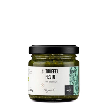Das Wajos Trüffel Pesto bringt pures Gourmet-Feeling in deine Küche. Feiner weißer Trüffel trifft auf frisches Basilikum – eine Kombination, die nach Italien, Sonne und Luxus schmeckt. Ob zu Pasta, Risotto oder einfach auf geröstetem Brot: Ein Löffel reicht, um jedes Gericht in etwas Besonderes zu verwandeln. 🍝✨