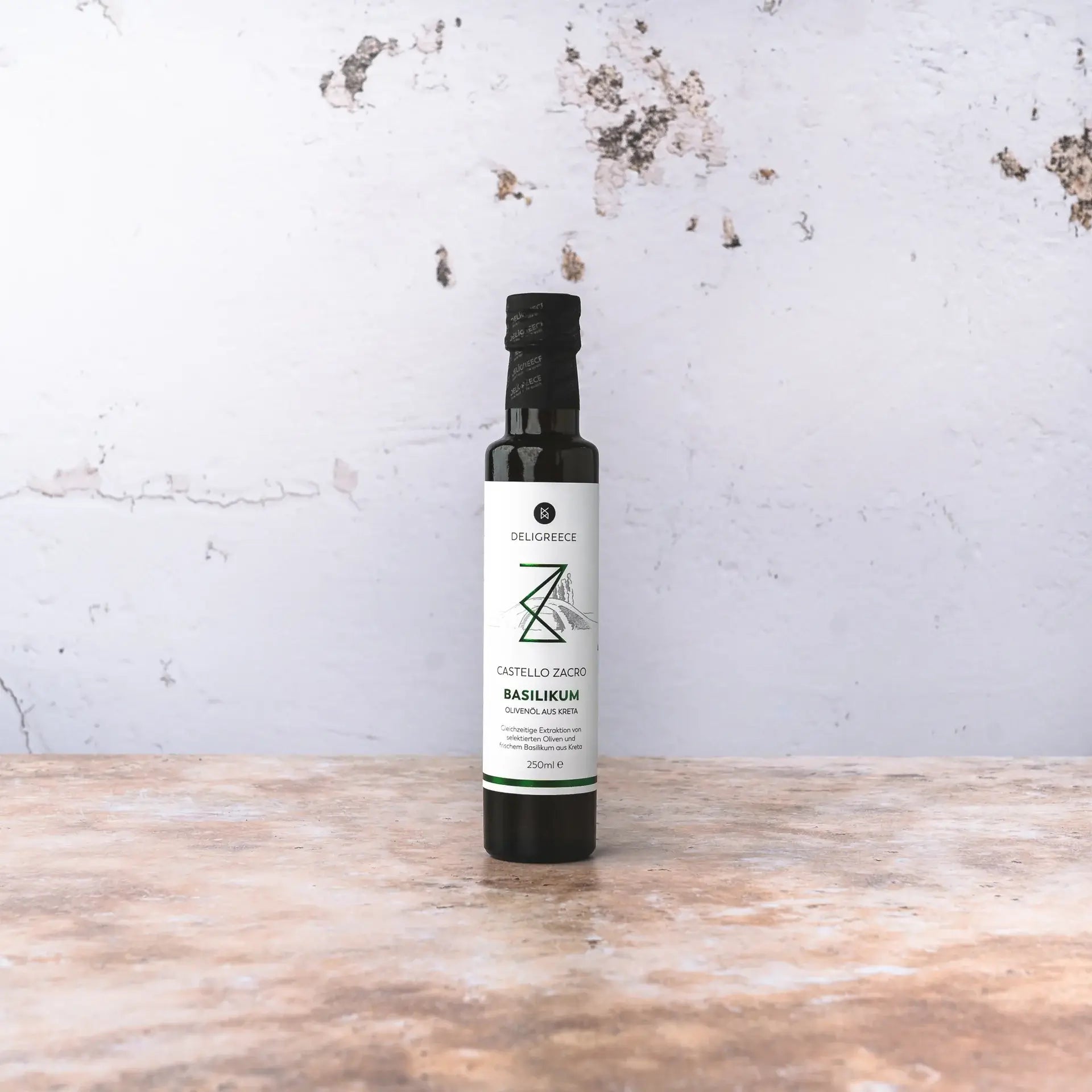 Castello Zacro arbeitet mit Oliven aus der Region Zakros auf Kreta, bekannt für ihre hohe Qualität und milden Aromen. Das Basilikum-Öl ist limitiert, handwerklich hergestellt und in jeder Flasche steckt ein Stück griechische Lebensfreude. So wird jedes Essen ein kleiner Urlaubsmoment. 🇬🇷💛