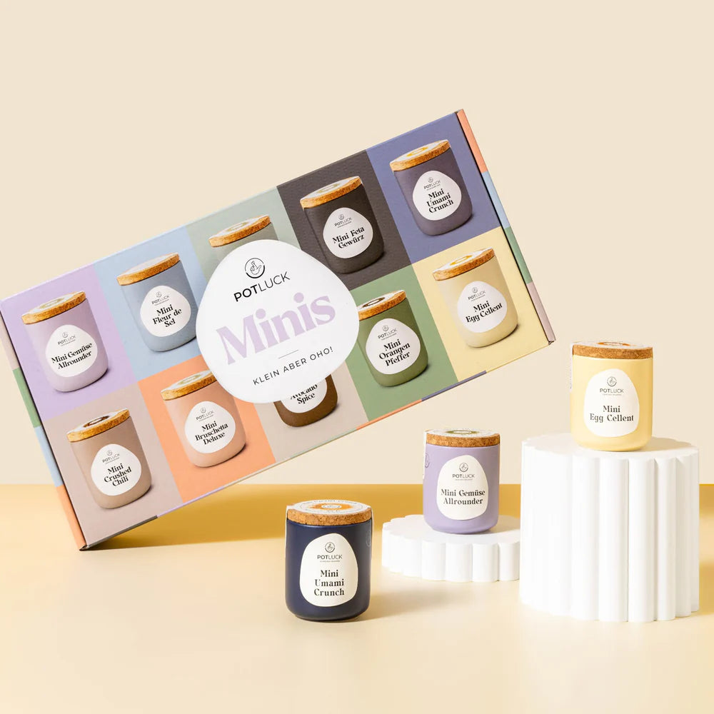 Unser POTLUCK 10er Mini Set ist die perfekte Einladung, Vielfalt zu feiern. Zehn handverlesene Gewürzmixe, die deinen Gerichten das gewisse Etwas geben – von Klassikern bis zu echten Geschmacksabenteuern. Klein im Format, riesig im Taste!